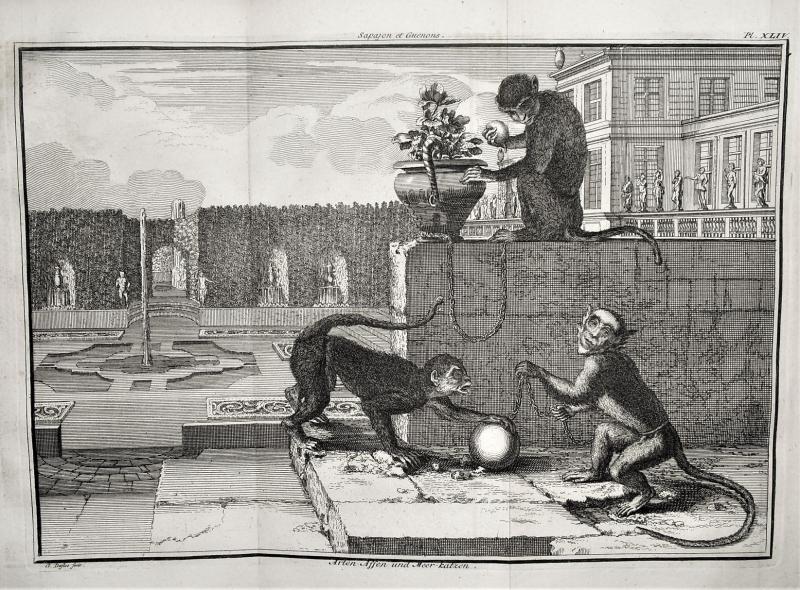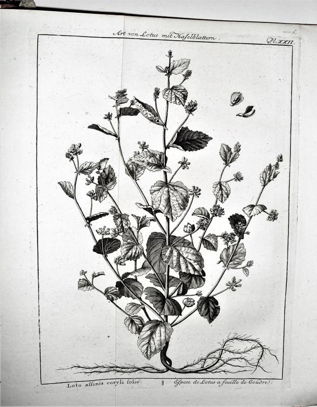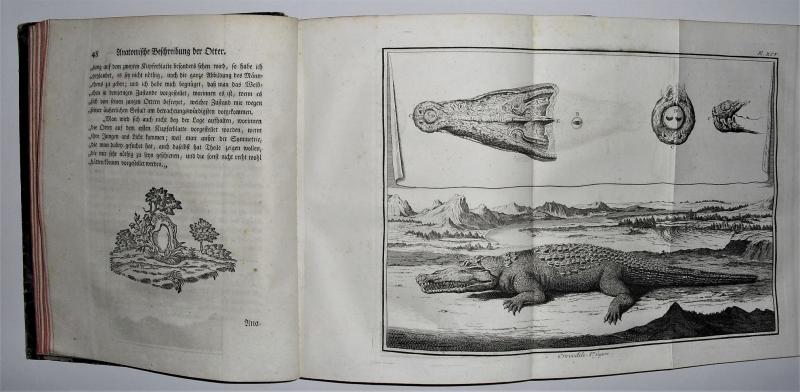 Der Herren Perrault, Charras und Dodarts Abhandlungen zur Naturgeschichte der Thiere und Plfanzen; welche ehemals der königl. franz. Akad. der Wissenschaften vorgetragen worden. Mit dazu gehörigen nach dem Leben gezeichneten Kupfern. Aus dem Französischen übersetzet (von Johann Joachim Schwabe). 3 Bände. Leipzig, Arkstee und Merkus, 1757-58. 4to. XXVI, 1 Bl., 346 S., 7 Bll.; 2 Bll., 378 S., 9 Bll.; 4 Bll., 358 S., 5 Bll. Mit gest. Frontispiz und 137 meist gefalt. Kupfertafeln von Claude Duflos. Marmorierte Pappbände der Zeit mit hs. Rückenschild.