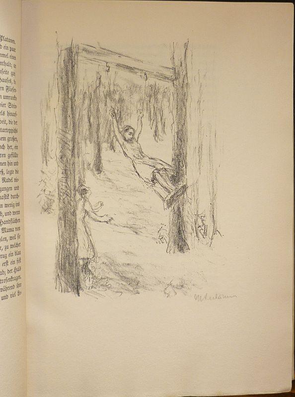Schauer II, 43. - Eines von 325 numer. Ex., das erste Vollbild von Max Liebermann signiert. Jahresgabe der Maximilian-Gesellschaft für 1926 und 1927. Satz des Textes aus der Walbaum-Fraktur. Handpressendruck der Officina Serpentis. Druck der LIthographien von M. W. Lassaly. Einband von Hübel und Denck nach Entwurf von Marcus Behmer. Nachwort von Fritz Behrend. - Fontanes berühmtester Roman mit den Illustrationen des wohl berühmtesten Impressionisten aus Berlin. - Schuber minimal berieben, kl. Fleck am Rücken. Sonst ein tadelloses Exemplar von bester Erhaltung.