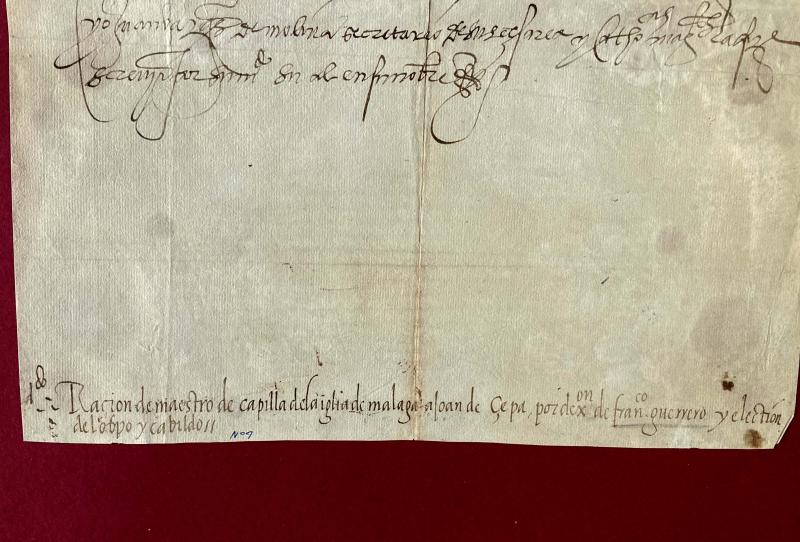 JOHANNA VON SPANIEN (Juana de Austria, 1535-1573), Statthalterin von Spanien u. Kronprinzessin von Portugal, Förderin der Inquisition und der Jesuiten. Urkunde (Real provisión) mit eigh. U. ("Yo la princesa"), Valladolid, 2. Dezember 1554. Spanische Handschrift auf Papier, c. 35,5 x 29,5 cm, gebr., etw. feuchtfleckig, Tinte stellenw. leicht blass, kl. Löcher am Oberrand, Ränder leicht beschn. Johanna ordnet - im Namen von Karl V. und Johanna der Wahnsinnigen - in dieser an den Komponisten Juan de Cepa (1520-1576) gerichteten Verfügung an, dass er binnen 30 Tagen die Stelle des Kapellmeisters der Kathedrale von Málaga übernehmen solle, die Francisco Guerrero (1527-1599) vakant gelassen habe. Als Nachfolger Guerreros seien nur Juan de Cepa und Rodrigo de Ceballos (1534-1581) in Frage gekommen. Gemäß dem königlichen Patronatsrecht sei die Entscheidung jedochh für Cepa ausgefallen. - Nach dem Tod des Kapellmeister Cristóbal de Morales war Guerrero in diese Stellung gewählt worden. Da sich Guerrero jedoch kurz darauf für Sevilla entschied, war die Position in Málaga erneut vakant und wurde mit der vorliegenden Verfügung durch Juan de Cepa besetzt, der die Stelle bis zu seinem Tod innehatte