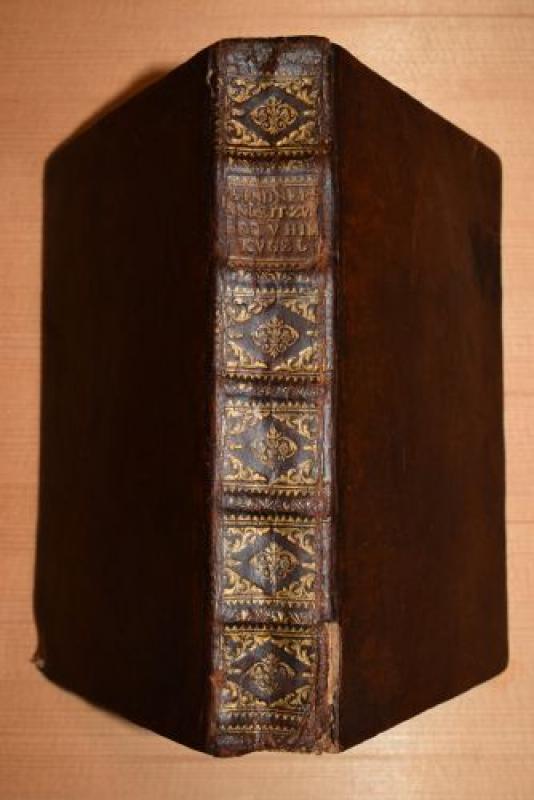 Poggendorff I, 1467. Editio princeps. Lindner (1694-1740), Magister der Philosophie, Gymnasialprofessor für Mathematik (in Regensburg); vorliegendes sein Hauptwerk: "Als Schriftsteller machte er sich vornehmlich durch seine Anweisung zu den Welt- und Himmelskugeln (...) bekannt, und verfertigte mit vieler Geschicklichkeit große Erd- und Himmelskugeln" (Jöcher, Suppl. III, 1882). Etwas berieben; am Fuß einseitig mit Riss im Gelenk (ca. 3 cm); Rückenvergoldung gebräunt bzw. oxydiert; 2 kaum störende Schabstellen auf Vorderdeckel; eine Ecke des Hinterdeckels mit Fehlstelle; teils gering braunfleckig; Bl. 9/10 mit Eckausriß (kein Textverlust); S. 290 mit 1 Buntstiftanstreichung. Trotz der Mängel ein akzeptables Exemplar.
