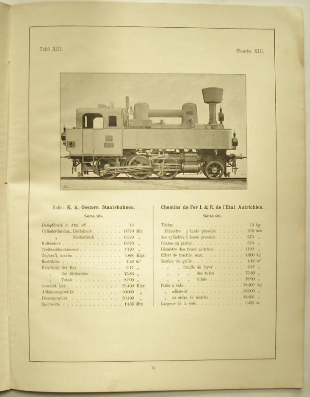 Vierte Ausgabe. - Das Frontispiz mit einer eindrucksvollen Ansicht einer Lokomotive der Serie 108. - Text in Deutsch u. Französisch. - Aus der Sammlung Metzeltin. - Neuner S. 491 (ohne Frontispiz). - Angestaubt, 1 Ecke mit Knickspur. Gelenk innen angeplatzt. Minimal stockfleckig. 1 Kante mit kleiner Stoßstelle.