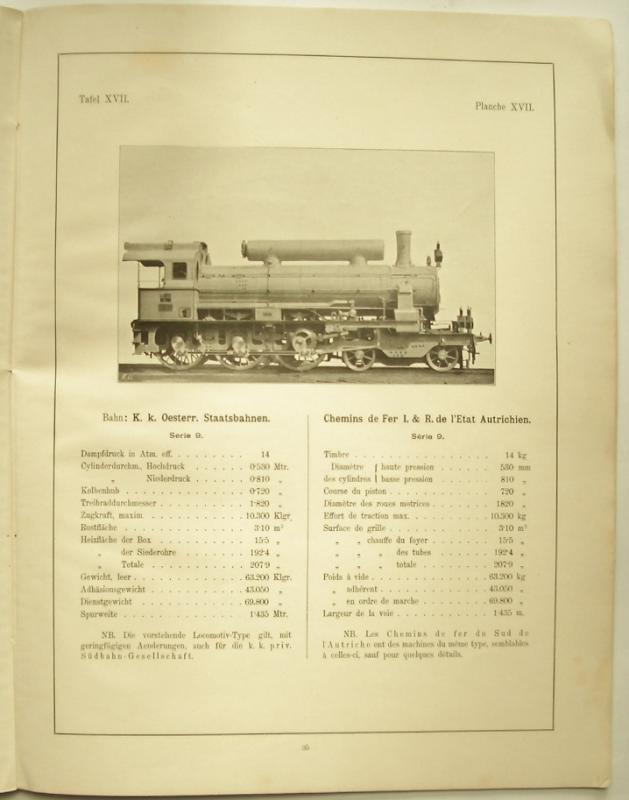 Verbund-Locomotiven ohne Anfahr-Mechanismus System Gölsdorf. - Locomotives Compound avec dispositif système Goelsdorf pour démarrage sans appareils spéciaux. Mit montierter Lichtdruck-Tafel als Frontispiz u. 54 Abb. nach Photographien sowie 17 Abb. im Text. Wien u. Paris, Selbstverlag, 1902. 4to. (33,5 x 26,0 cm). 54 S. (ab S. 19 auch Tafel 1-36). Flexibler Orig.-Halbleinwandband mit Goldprägung.
