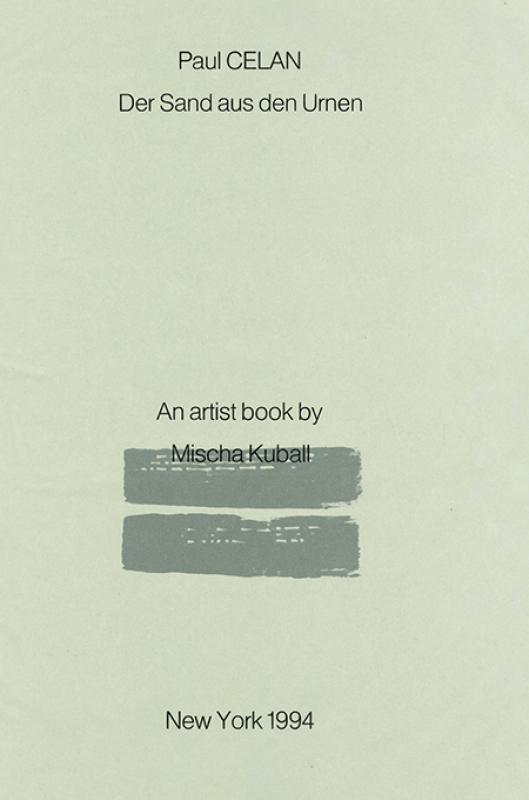 * 22. Druck der Edition Gunnar A. Kaldewey. Eins von 50 (ges. 65) Exemplaren der Normalausgabe, vom Künstler signiert. - Der Band enthält 13 Orig.-Acrylübermalungen sowie Celans Texte auf kräftigem, hellgrauen Papier über Blindprägungen - eine zusätzliche Wiedergabe der Texte neben dem Buchdruck in Braille-Schrift (Blindenschrift). - Es handelt sich um den zweiten Band des Kaldeweyschen Celanprojektes von "Mohn und Gedächtnis", gedruckt im "Tower of Poestenkill", New York. Die Handeinbände schuf Craig Jensen.