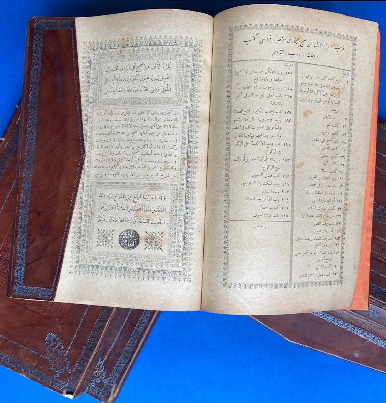 Sahīh al-Buchārī Printed in Arabic Istanbul: Matbaa-i Amire 1315 H. [1897] 8 vols. bound in 4 vols. 228, 260, 3235, 270, 242, 253, 240, 219 pp. 24.5 x 18 cm, Ottoman Style full leather bound with flip