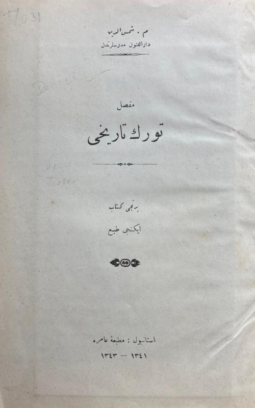 Mufassal Türk Tarihi (1. Kitab) (Turkish History - 1st Book) Printed in Ottoman Turkish Istanbul: Âmire Matbaası, Maarif Vekâleti Ne riyatı, 1341 [1923] 160 pp., 6 double pages, 2 folded maps (41x44 cm.) ÖZEGE 14012 Full leather bound, guilded ornamental covers and guilded edges, 23 x 16.5 cm.