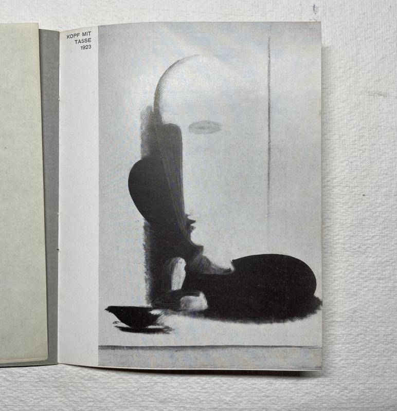 Originalausgabe des Kataloges zur ersten Einzelausstellung des Künstlers, die im Anschluss in Krefeld und Zürich zu sehen war. Von Oskar Schlemmer selbst gestalteter Katalog , ähnliche Gestaltungsprinzipien verwendet Schlemmer auch bei der Gestaltung des Katalogs „Ausstellung Moderner Bildwirkereien 1930“ bei J.B. Neumann und G. Franke in München im Oktober 1930 (Vgl. Hesse Auktionen, Katalog 30, 3024, Nr. 120). Bemerkenswert am vorliegenden Exemplar sind die roten Schlieren der Druckfarbe auf der Vorderseite des Pergaminumschlags. Sind diese ein Fehldruck oder künstlerisch gewünscht? Wahrscheinlich ein Fehler beim Druckvorgang, aber warum wurde das Exemplar ausgeliefert? Das Exemplar im digitalen Verzeichnis der Bestände in der Universität Heidelberg, als auch das Exemplar der Züricher Kunstgesellschaft, abgebildet auf der Seite http://alfredflechtheim.com/kuenstler/oskar-schlemmer/ sind mit reinem Letterndruck gestaltet. Sehr selten, weltweit kann ich nur 16 Exemplare im Katalog WorldCat nachweisen, und ein Exemplar im Auktionshandel (Hesse Auktionen, November 2016, Lot 888). Tadelloser Zustand, mit losen beiliegenden original Seidenpapierblätter zum Schutz der Abbildungen, fehlen wohl in allen oben aufgeführten Exemplaren.
