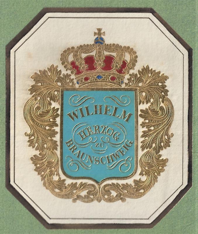 3 volumes in 12mo (107 x 105 mm), printed on better paper. Burgundy-red morocco of c. 1840, profusely gilt and inlaid, covers framed by a broad gilt fillet, a thin silvery-gilt fillet and a flower roll connecting the large corner pieces à la cathédrale gilt in a silvery shade and inlaid in rose and light-green, in centres large crowned coat of arms gilt, inlaid in red, green and blue, surrounded by the Order of the Guelphs (heraldic device: Nec aspera terrent) and the collar of the Order of the Garter (device: Honi soit qui mal y pense); spine raised on four broad half bands, second and fourth compartment gilt-lettered, the others finely gilt on pointillé ground; edges of boards and turn-ins gilt; light-green paper on liners and endleaves; edges gilt. Remarkably attractive multicoloured bookplate of Duke William.