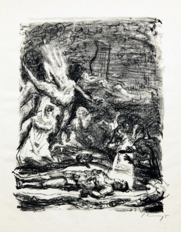 Avalun, Wien und Hellerau 1922. 22,5 x 17,5 cm. 105, [7] S. Mit einer signierten Lithographie von Max Slevogt. Roter Originalmaroquinband mit Vergoldung (P. A. Demeter).