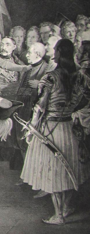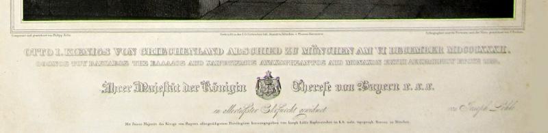 (Salzburg 1.6. 1815 - 26.7.1867 Bamberg). Otto war der 2. Sohn von König Ludwig I. von Bayern., der ein Fan der hellenischen Kultur war und den Unabhänigkeitskrieg der Griechen gegen die Osmanen unterstützte. Nach Gründung des neuen Staates Griechenland wurde Ioannis Kapodistras 1. Staatsoberhaupt, der 1831 ermordet wurde. Weil die Griechen sich über einen Nachfolger nicht einigen konnten, brachten die Signaturmächte der Unabhängigkeit Griechenlands (Grossbritannien, Frankreich und Russland) den noch minderjährigen Prinzen von Bayern (Otto) ins Gespräch. So wurde Otto 1832 der 1. König von Griechenland. Die vorliegende Lithographie zeigt den Abschied Ottos am 6. 12. 1832 aus München."Otto I. Koenigs von Griechenland Abschied zu München ...". Lithographie n. u. v. G. Bodmer / Philipp Foltz b. Thomas Kammerer in München, dat. 1832, 66 x 51 (H) - Blattgröße 81 x 57 (H) (Bestellnr: 11623) € 950,-