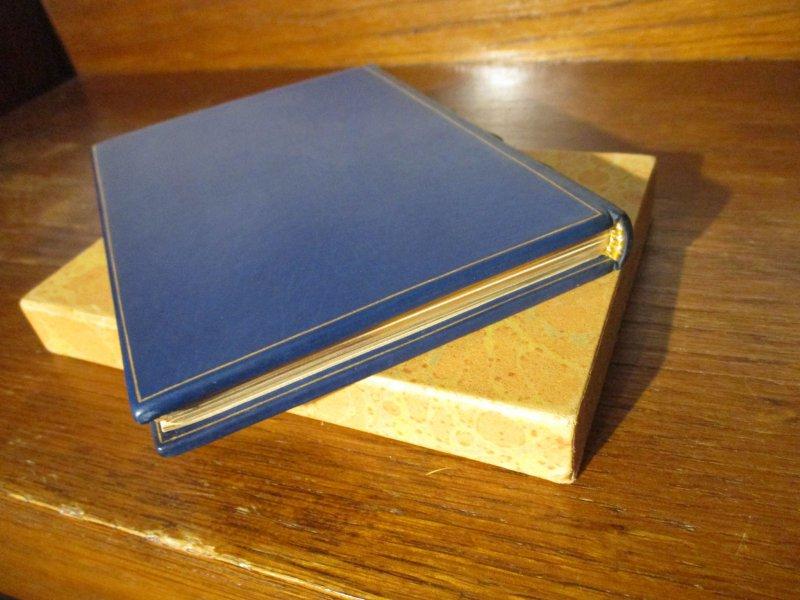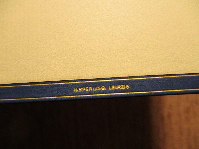 Die Erzählung vom Toraschreiber. Von Max Strauß aus dem Hebräischen übersetzt. Berlin, Marx & Co., 1923. Kl. 8° (14,5 x 10 cm). 5 Bll., 40 (4) Seiten, 3 Bll. Mit einer Original-Holzschnitt-Inintiale von Joseph Budko. Signierter Original-Handeinband von Sperling/Leipzig in dunkelblauem Kalbsleder. Franzband auf 4 echten Bünden mit vergoldetem Rückentitel und Deckelrahmen, Innenkantenvergoldung, Kopfgoldschnitt und handumstochenen Kapitalen. Goldgeprägte Stempelsignatur unten im hinteren Innendeckel. In angepasstem Originalschuber mit lederverstärkten Kanten und Überzug aus handmarmoriertem Papier. Rücken minimal aufgehellt, sonst innen und außen von tadellos frischer Erhaltung. Schuber an den Kanten leicht berieben.