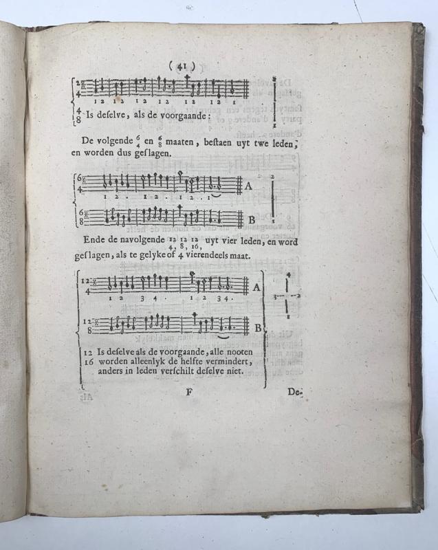 Korte en noodigste grond-regelen van de bassus-continuus. Beneffens verscheyde aenmerkingen, over desselfs behandelinge, voorgestelt, ende met eenige exempels verklaert. Utrecht, Willem Stouw (printed by Pieter Muntendam), 1731. 4° (242 x 192 mm). VIII, 52 Seiten, 1 Blatt, 1 Kupfertafel und viele Notenbeispiele im Text. Roter Halblederband der Zeit, Deckel mit Goldbrokatpapier bezogen (Rücken berieben)