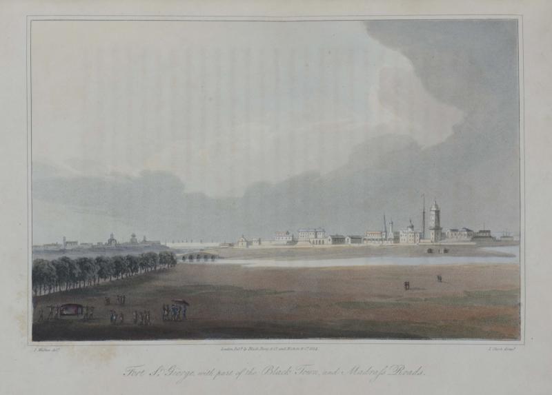 Journal of a Voyage in 1811 and 1812, to Madras and China; returning by the Cape of Good Hope and St. Helena; in the H.C.S. The Hope, Capt. James Pendergrass. London, Nichols, Son, and Bentley, 1814. 4°. XX, 246 S., mit 24 altkolorierten Aquatintatafeln. Halbleder im Stil der Zeit mit Rückenschildern und leichter Rückenvergoldung, (gering beschabt).
