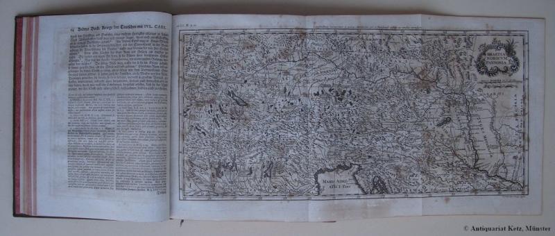 ** Bedeutsames Werk zur deutschen Geschichte - zwei wohlerhaltene Bände in schönen, zeitgenössischen Einbänden. Eine umfassende historische Gesamtdarstellung der ersten 8 Jahrhunderte der deutschen Geschichte. Hier liegt die um zwei Karten erweiterte zweite Auflage vor. Vgl. ADB XX, 556f. (mit ausführlicher Würdigung des Werkes, die erste Ausgabe erschien 1726 - 37). - Johann Jakob Mascou (1689 Danzig - 1761 Leipzig) war Jurist u. Staatsrechtler, Historiker. * Vgl. Ebert 13340 - Brunet III 1514. * Breitrandiger Druck. Satzspiegel teils gebräunt. Sonst sauber. Rote Kleisterpapiervorsätze.