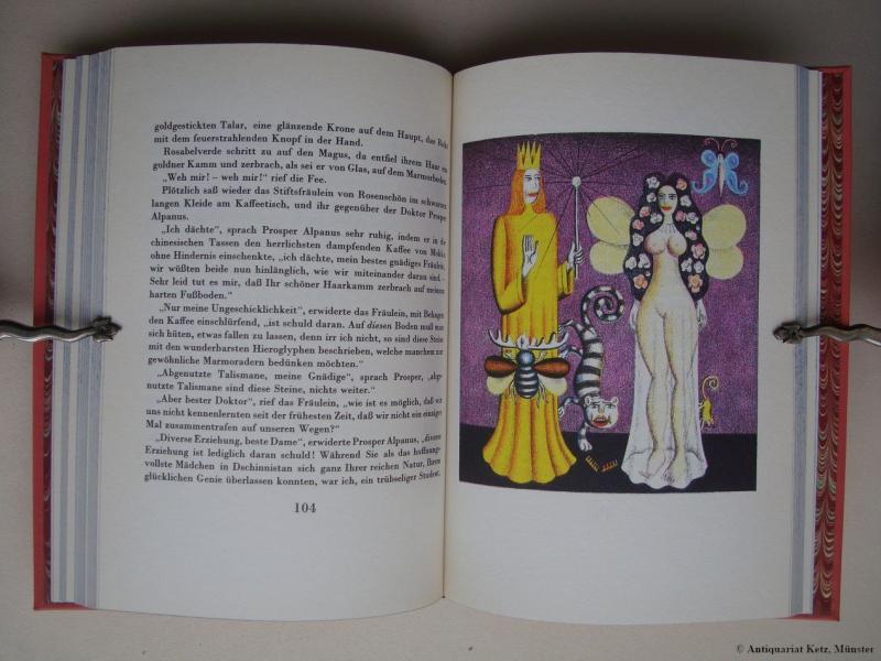 ** Seltene Vorzugsausgabe in schönem Ganzledereinband. Hans Ticha illustrierte das Märchen von E. T. A. Hoffmann mit feinen skurrilen Graphiken. * Sehr gut erhalten. Keine Namen.